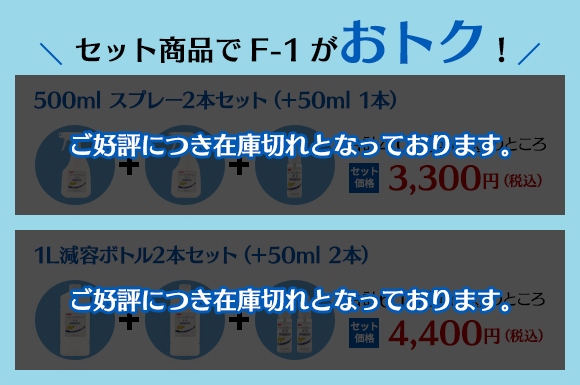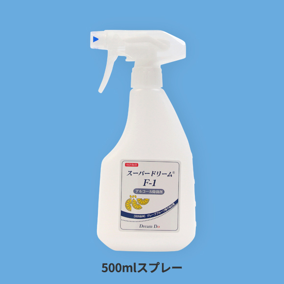 スーパードリームF-1は除菌に有効なばかりでなく、 頻繁に使う方にも安心です。また、スーパードリームF-1に使用しているグレープフルーツ種子抽出液は食品添加物として認められておりますので口に入っても問題はありません。 (弊社では食品への直接の噴霧はお勧めしておりません)