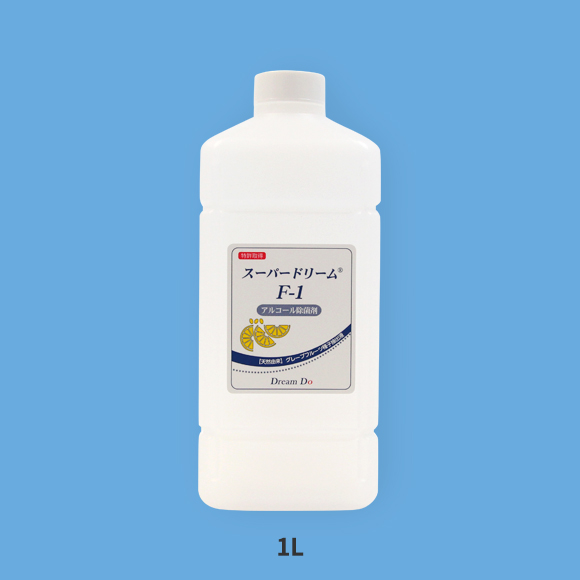 スーパードリームF-1はアルコール製剤としても機能する為、使用直後は若干のアルコール臭を感じます。しかし、その後は無味・無臭になりますので、味や臭いが 残りません。その為、一般家庭から製造ライン全般、機械器具、包丁・まな板等の調理器具、生ゴミの除菌等にもご使用頂けます。