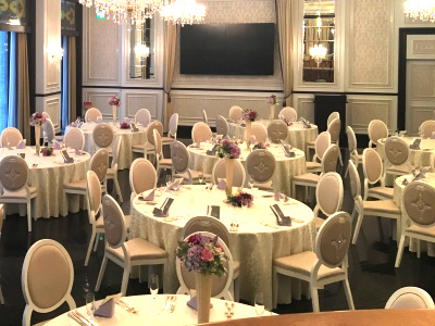 結婚披露宴やパーティーが行われるホテルの宴会場は、とくに清潔さが求められます。従来の処理剤は、ゼリー状にかたまり、処理した後がすべりやすくなっていました。 サットクリーンは処理した後がサラサラになるので、足元がすべらず安全です。